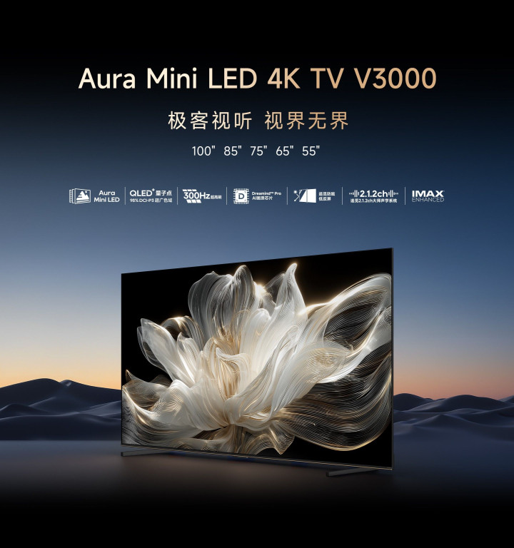 除了V3000系列,追觅电视S100系列也是游戏玩家的不错选择。定位海外旗舰,主打音画融合与简约美学。S100支持144Hz超高刷新率和超低延迟技术,确保高速动态画面的流畅性与操作响应速度。显示技术方面则采用融合QLED与Mini LED优势的Aura Mini LED背光技术,结合全阵列局部调光(Full Array Local Dimming),实现了更深沉的黑色表现和更精准的亮度控制。还有定制Dreamind™ Pro AI画质芯片,直接能将2K片源智能提升至接近4K画质,并通过AI优化色彩、清晰度及降噪效果,让每一帧画面都栩栩如生。