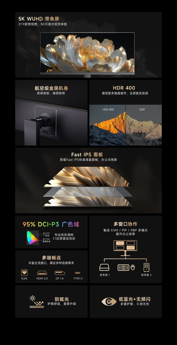 虽然这篇文章关注的重点是电视观影和游戏体验,但追觅的其他产品确实也很不错。超宽屏显示器X1 Ultra拥有21:9的超宽视野,相比传统16:9显示器多出31%的显示面积。可轻松并排打开文档、表格、网页等多个工作窗口并且同时处理,办公效率直线上升。