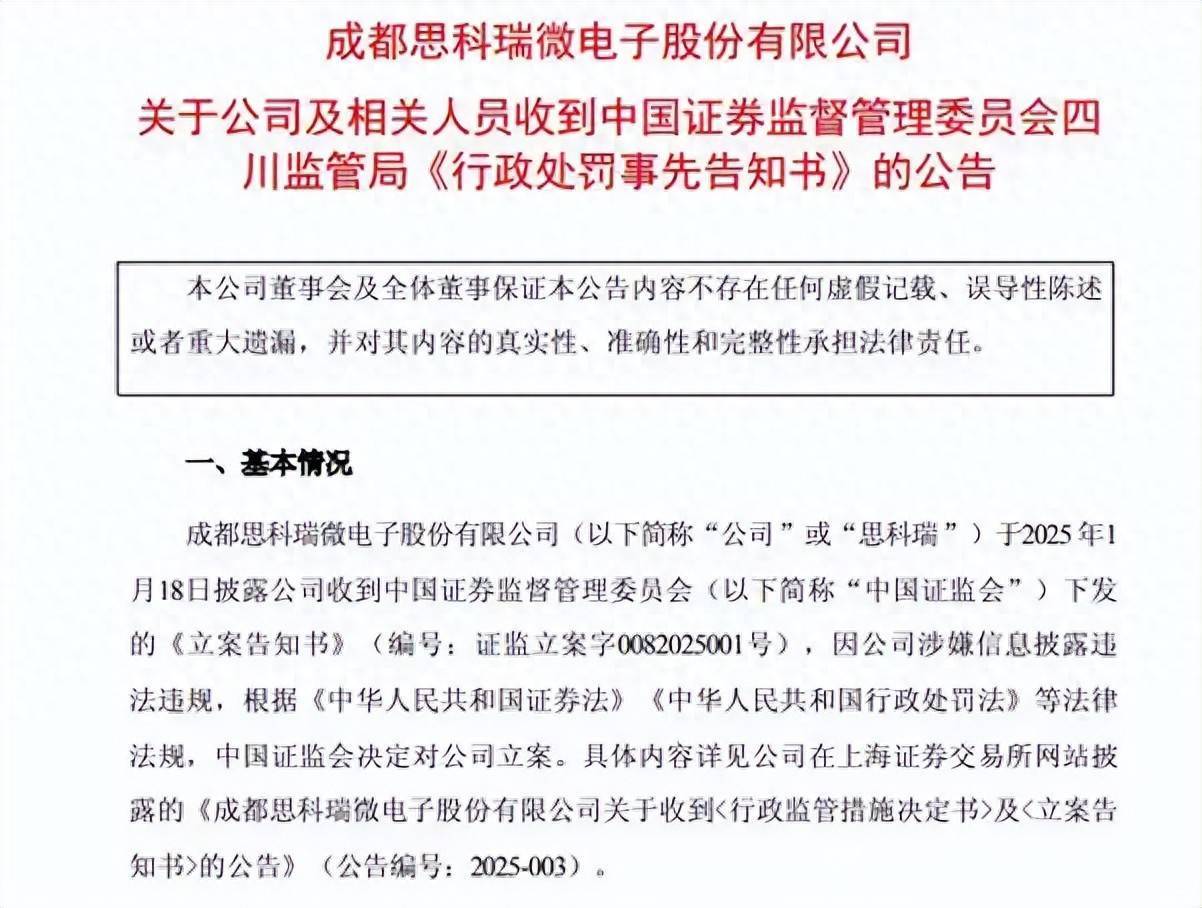 9月19日晚间,思科瑞(688053)、创意信息(300366)、复旦复华(600624)、科净源(301372)四家上市公司分别发布公告称,收到中国证监会下发的《行政处罚事先告知书》,其信息披露违法违规行为的事实得以明确。其中,有三家上市公司将被实施其他风险警示,22日均停牌一天。这与2024年证监会“依法从严执法”的监管主线高度吻合。